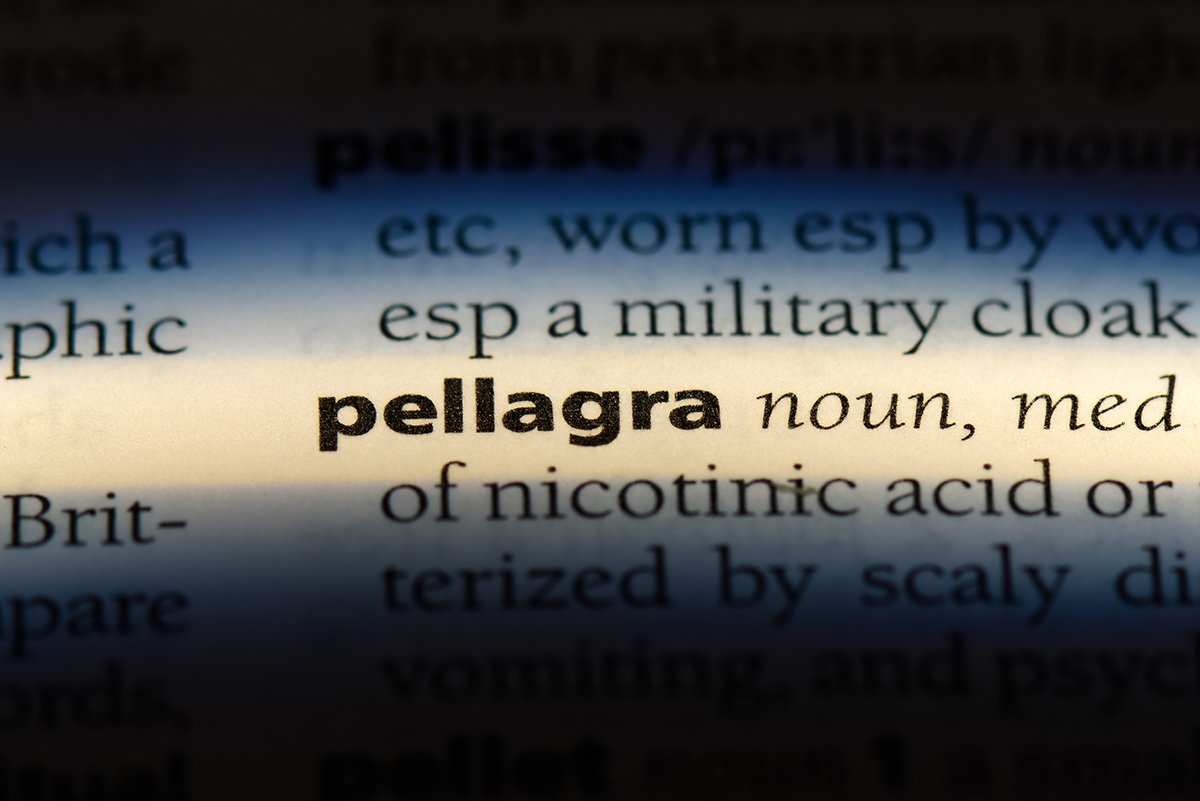 ペラグラとは、ビタミンB3(ナイアシン)の欠乏によって引き起こされる病気で、「皮膚炎」「下痢」「認知症」「死亡」の4つの症状(4D)を特徴とします。